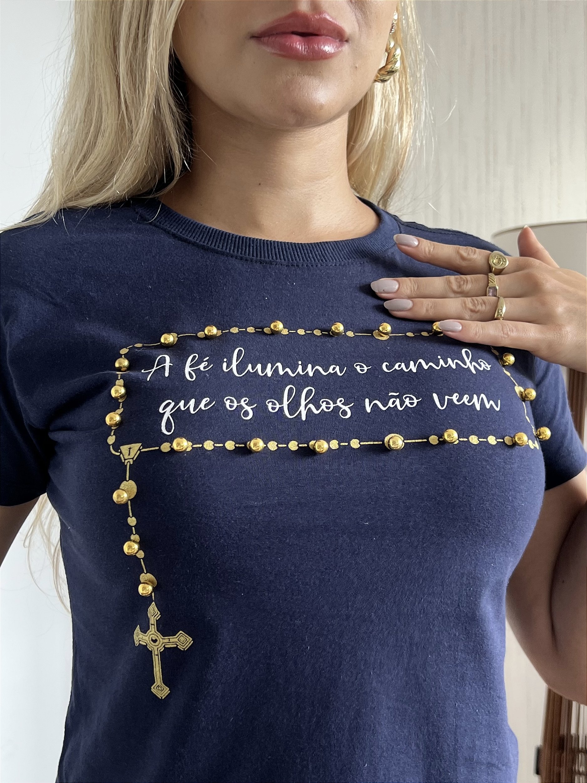 TSHIRT A FÉ ILUMINA PÉROLAS - AZUL MARINHO