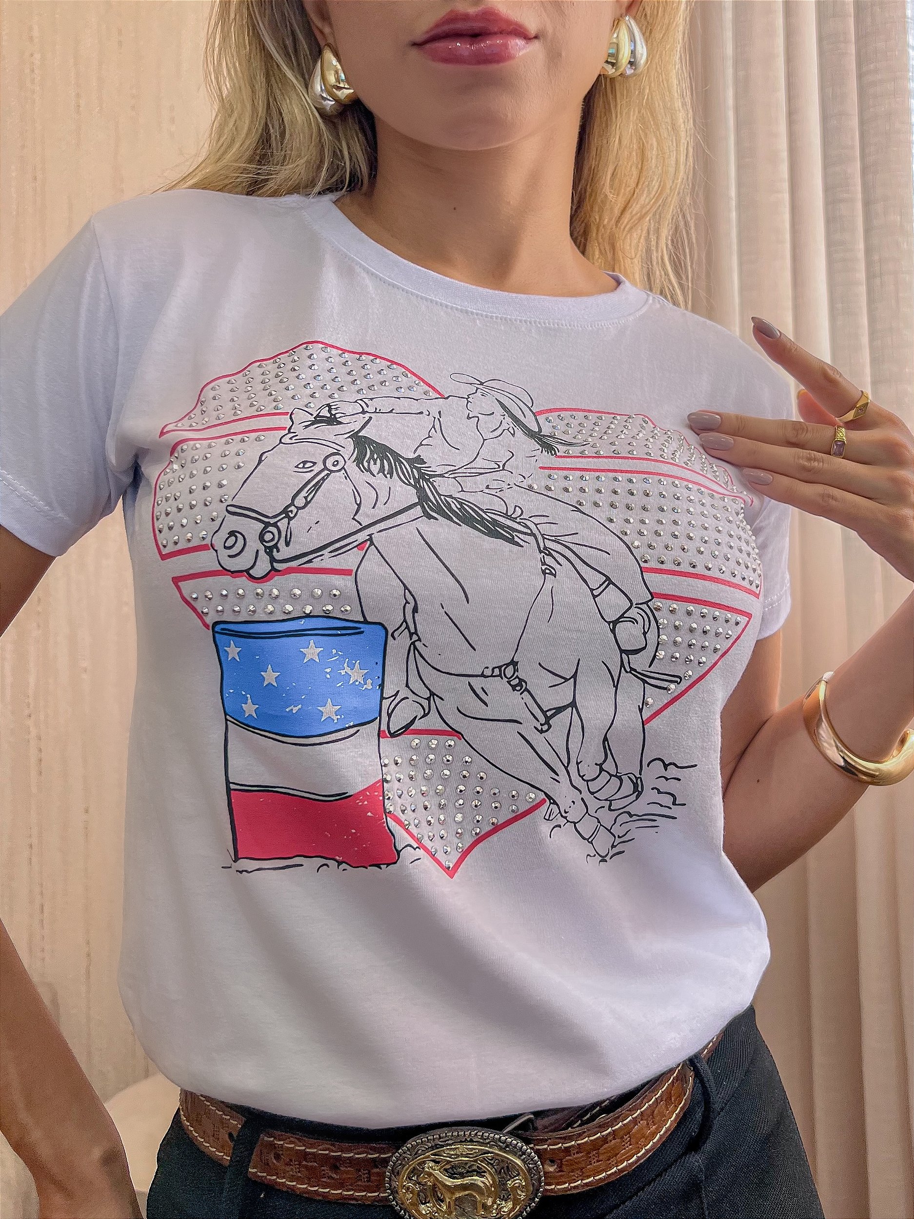 ESSA É UMA TSHIRT SILK SCREEN E APLICAÇÃO EM PEDRARIAS .