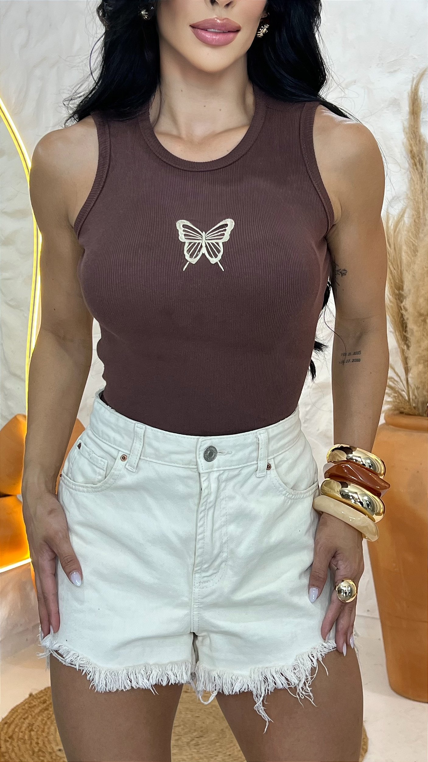 REGATA NA RIBANA BORDADA BORBOLETA-CHOCOLATE