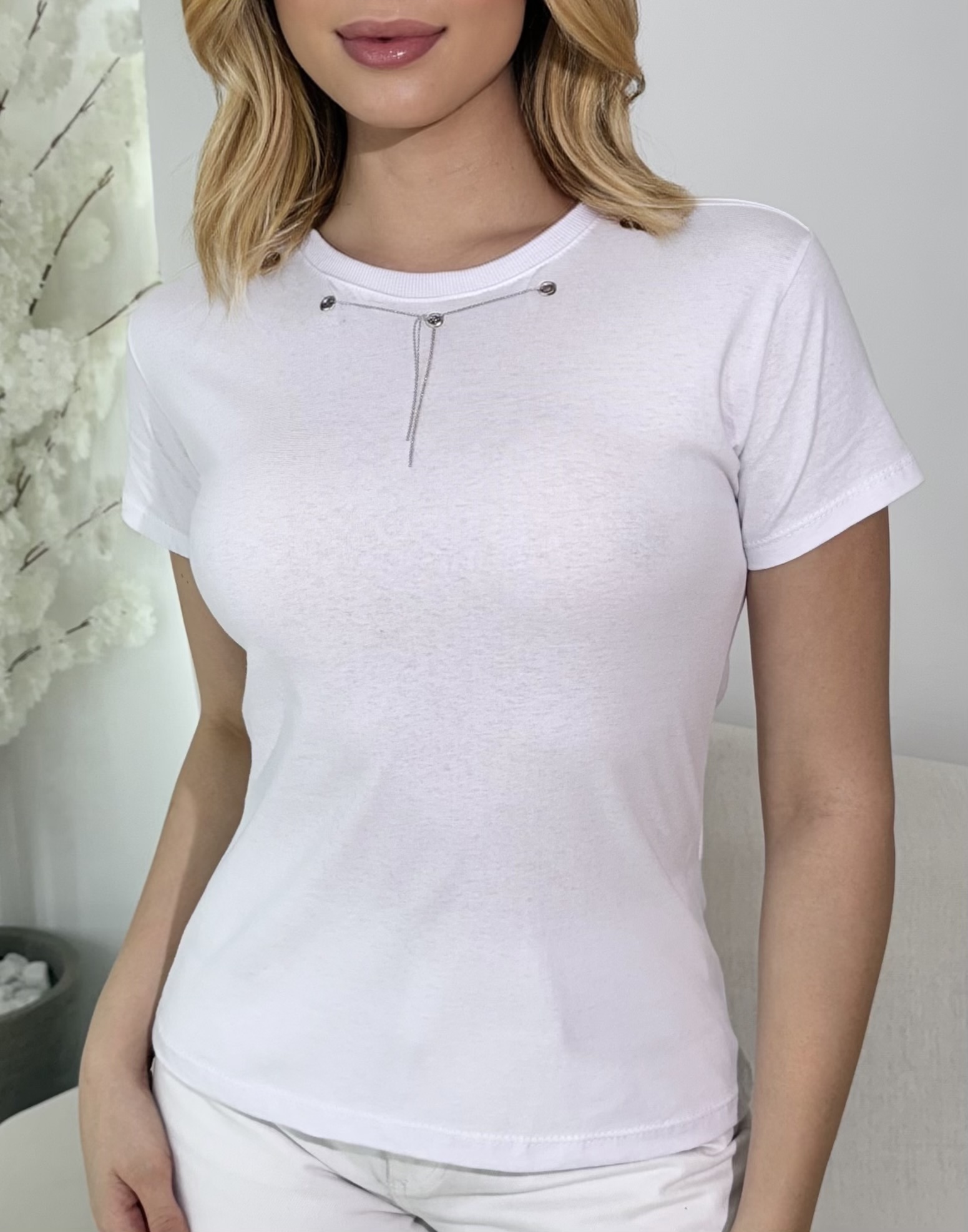 TSHIRT FEMININA LUXO CORRENTES PRATA - BRANCA