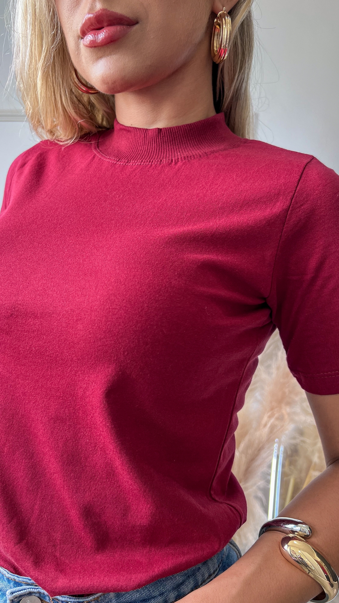 TSHIRT FEMININA BÁSICA GOLA ALTA- MARSALA