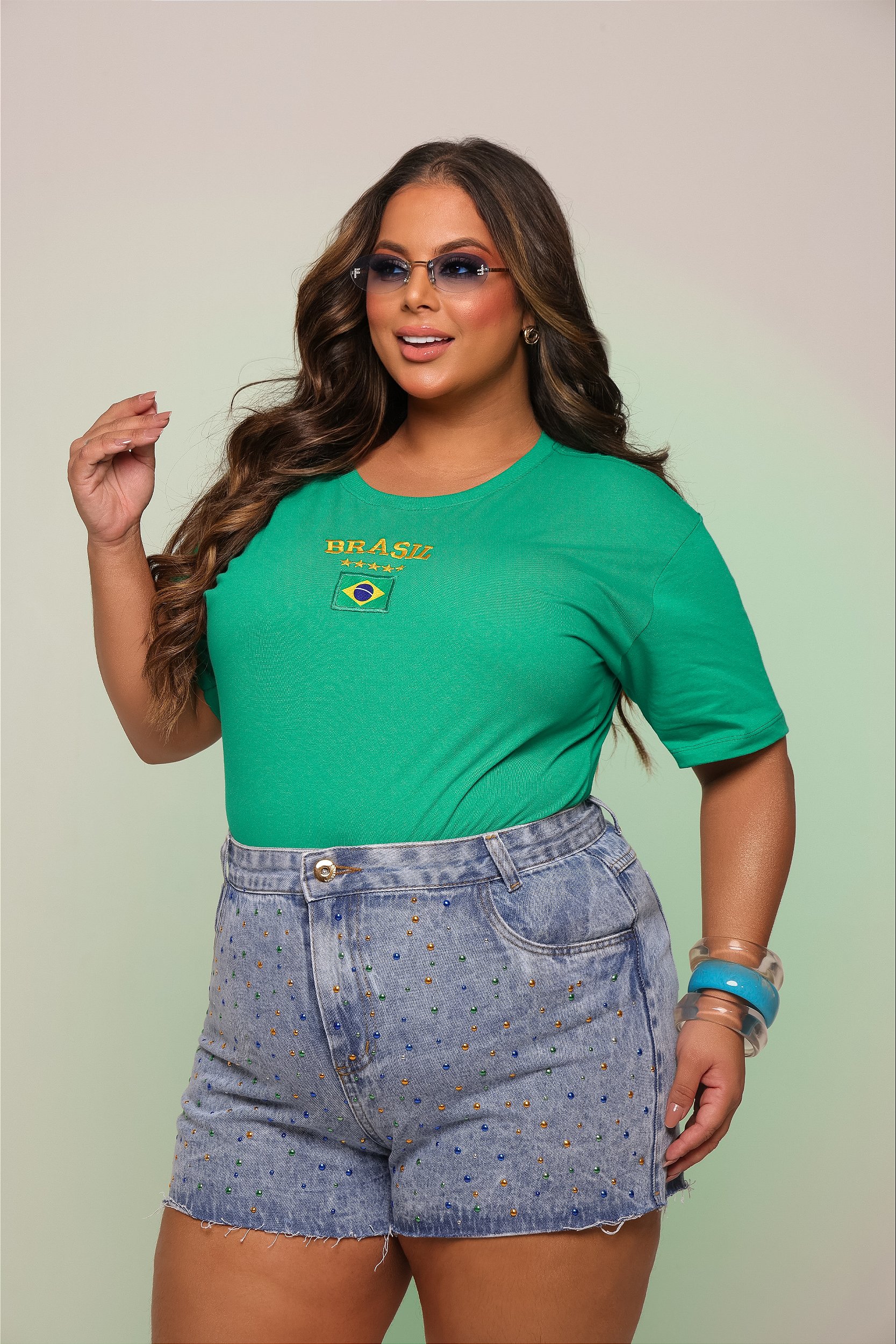 TSHIRT PLUS SIZE BORDADA BRASIL BANDEIRA-VERDE