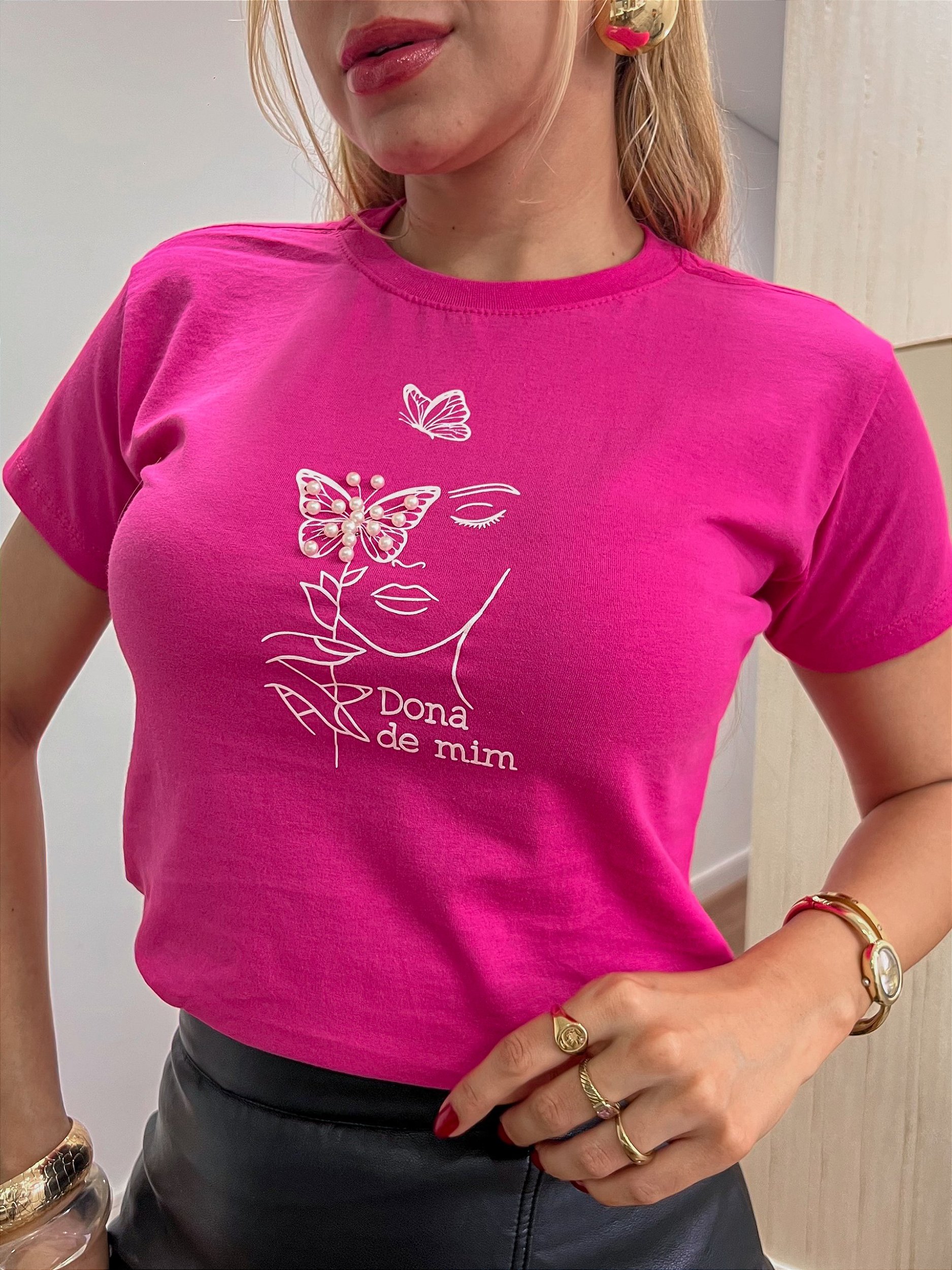 TSHIRT DONA DE MIM PÉROLAS - ROSA PINK